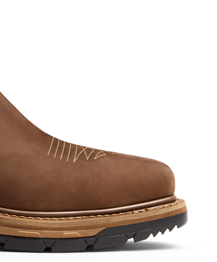 Built for the shape of a woman's foot, this premium, square-toe pull-on delivers heavy-duty performance in western style. It features an innovative system that simplifies entry and secures the foot in place, with wide stretch panels that allow comfortable and flexible movement throughout the day. Advanced waterproofing, a steel safety toe, built-in electrical hazard protection and excellent slip resistance deliver an extra measure of safety on the jobsite, while the subtle embroidery pattern conveys a clean, modern look. The Barnstormer rubber outsole offers best-in-class oil and abrasion resistance.